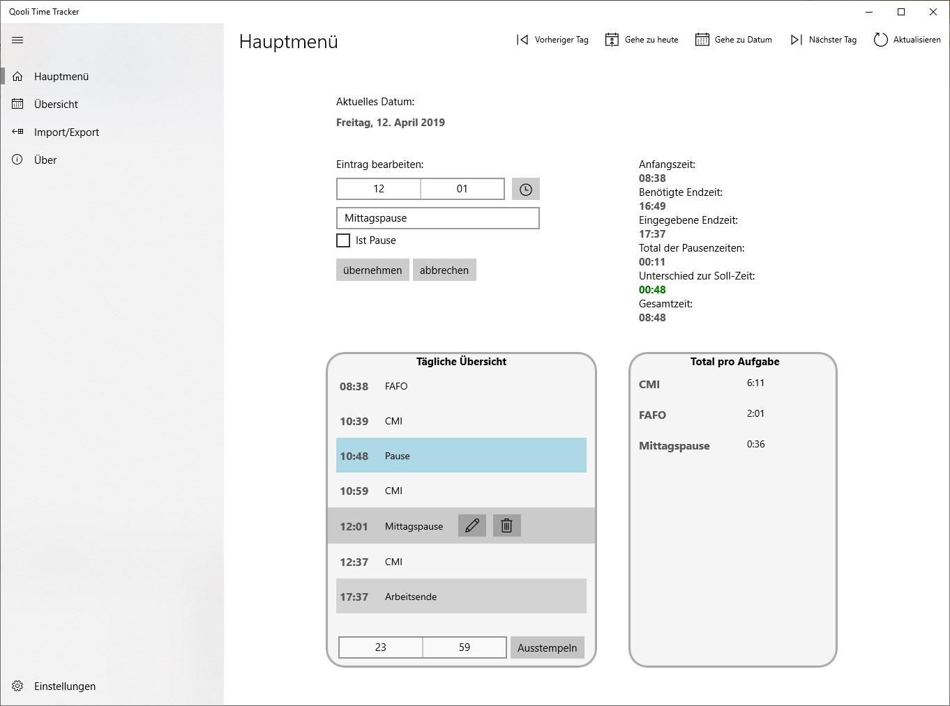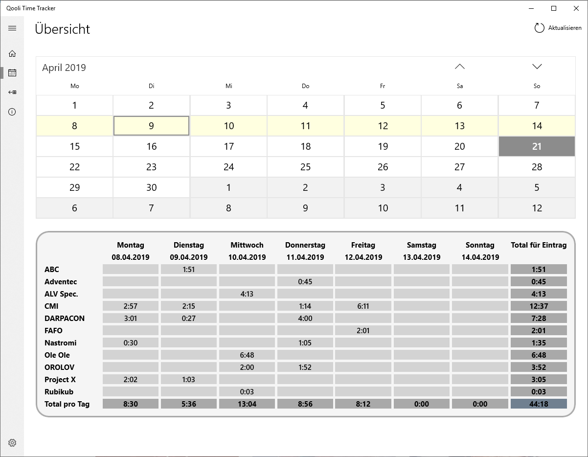 Eine weitere „Universal Windows Platform“-Anwendung, geschrieben in C#, die verwendet werden kann, um seine Arbeitszeiten zu tracken.